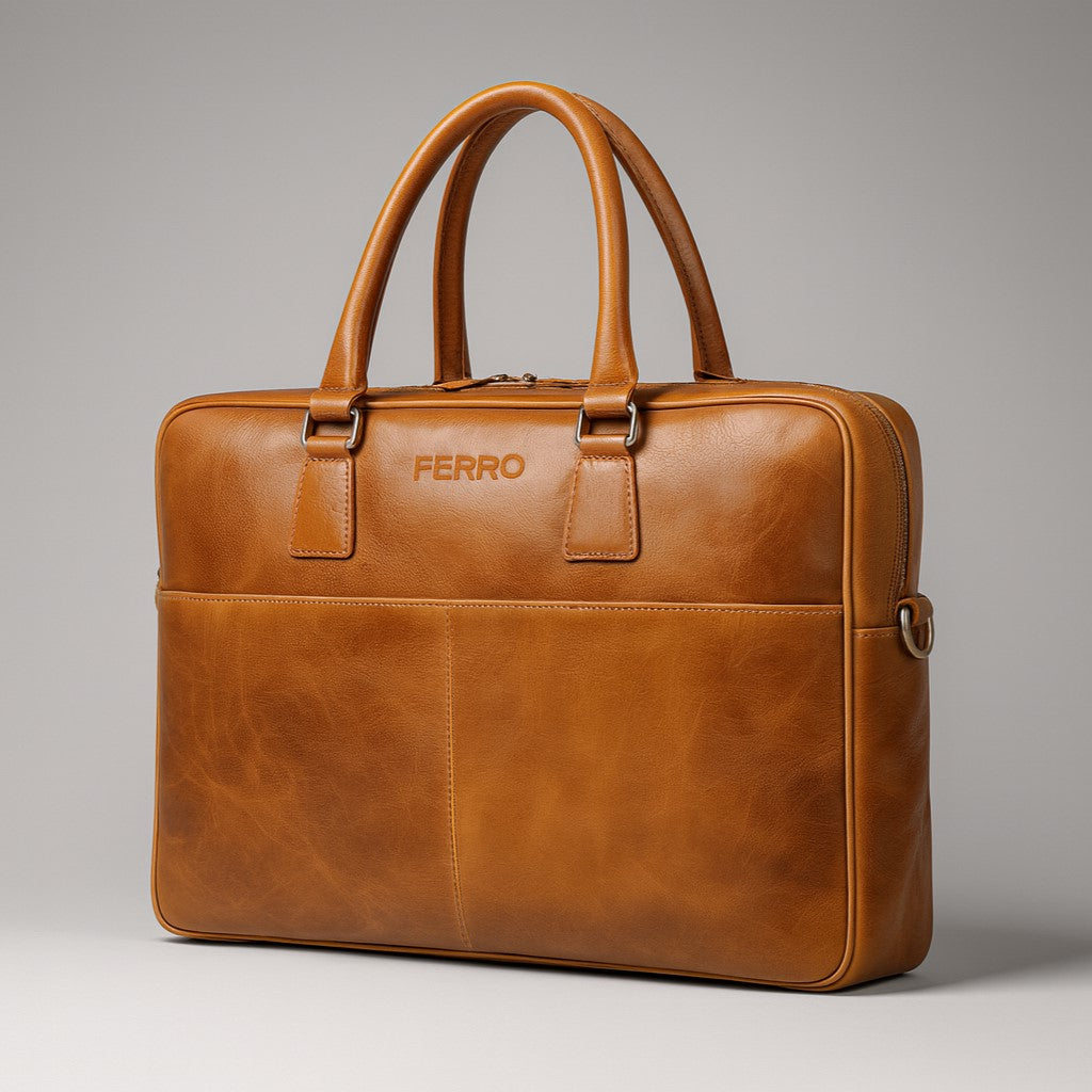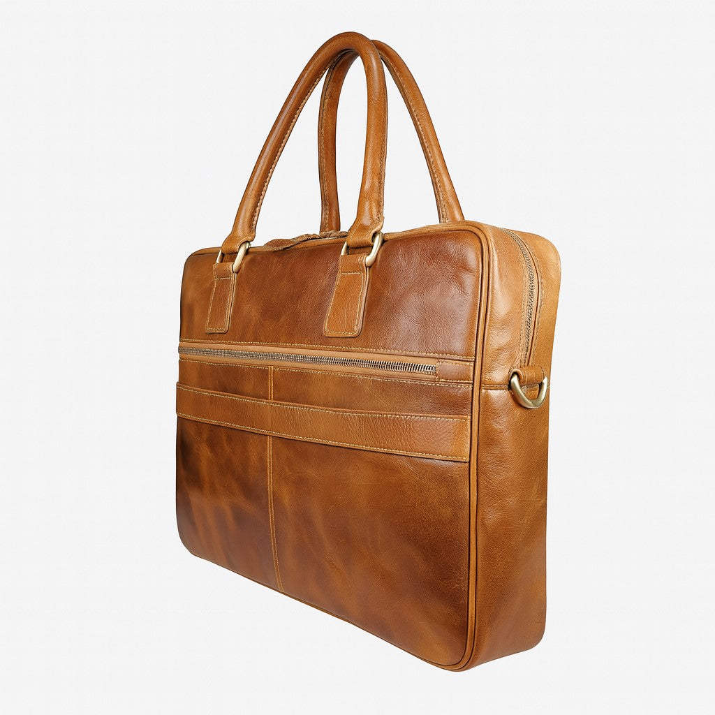 De Paul is dé ultieme business tas voor de moderne gentleman. Vervaardigd uit hoogwaardig, met de hand gepolijst echt leer, straalt deze 15" laptoptas (40x30x7cm) karakter en klasse uit. De rijke camelkleur krijgt door het gebruik alleen maar meer charme – een tas die met je meeleeft.